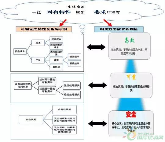 GB/T19001中對質(zhì)量的定義為:客體的一組固有特性滿足要求的程度,對“要求”的解釋為:明示的、通常隱含的或必須履行的需求或期望。依據(jù)上述定義,結(jié)合光伏行業(yè)的實際,圖1擴展性地給出了光伏發(fā)電站質(zhì)量特性及其內(nèi)在關(guān)系的邏輯框圖。