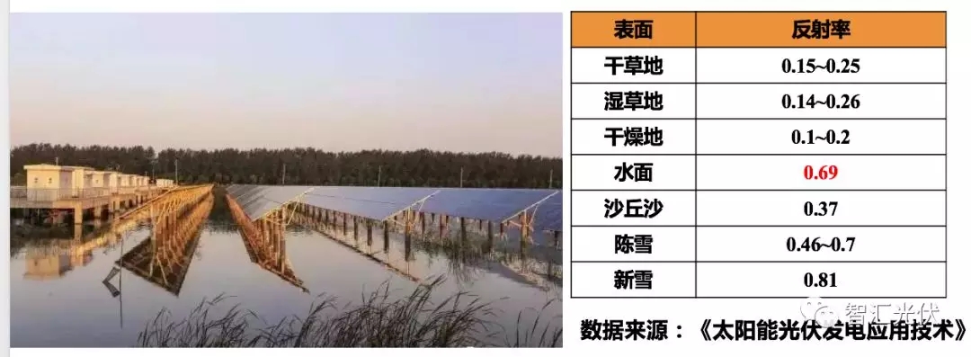 漁光互補(bǔ)電站他的水面反射率是非常高的,非常有利于提高背面的發(fā)電量。