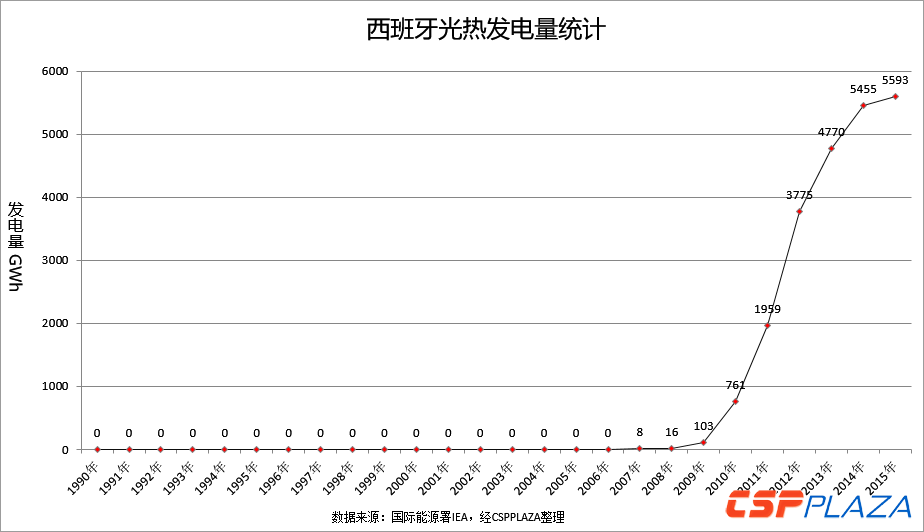 圖表:西班牙光熱發(fā)電量統(tǒng)計(jì)(1990~2015年)