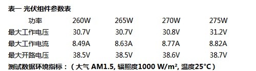 我們選擇已經(jīng)通過UL1500V認(rèn)證的國(guó)內(nèi)某知名組件廠的組件作為計(jì)算參照樣本,組件功率260W到275W,組件效率16.8%。需要重點(diǎn)說明的是組件廠的樣本參數(shù)是大氣 AM1.5, 輻照度1000 W/m2, 溫度25°C環(huán)境下參數(shù),現(xiàn)場(chǎng)峰值數(shù)據(jù)與以上條件差異較大,這是余量設(shè)計(jì)計(jì)算的重點(diǎn)考慮方面。組件參數(shù)選擇方面重點(diǎn)參照組件三個(gè)主要參數(shù),1.最大工作電壓;2.最大工作電流;3.最大開路電壓。