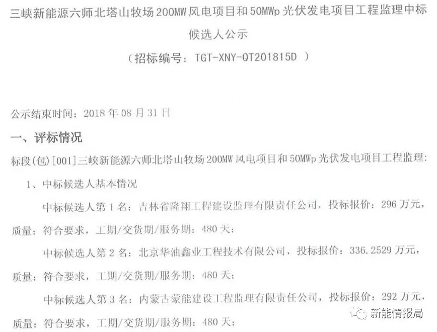 組件價格再創(chuàng)新低!三峽新能源50MW組件、EPC、監(jiān)理中標(biāo)候選人公示