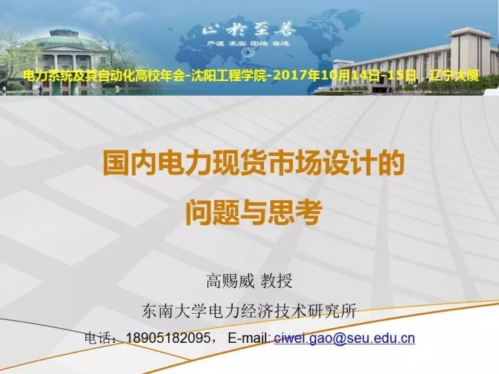 2017年10月13日~15日,中國(guó)高等學(xué)校電力系統(tǒng)及其自動(dòng)化專業(yè)第33屆學(xué)術(shù)年會(huì)在沈陽(yáng)召開(kāi),兩院院士、國(guó)內(nèi)外知名學(xué)者以及與會(huì)代表對(duì)電力系統(tǒng)領(lǐng)域的最新熱點(diǎn)、最新理論與技術(shù)進(jìn)行了學(xué)術(shù)交流。會(huì)上,東南大學(xué)高賜威教授作了題為“國(guó)內(nèi)電力現(xiàn)貨市場(chǎng)設(shè)計(jì)的問(wèn)題與思考”的報(bào)告,小編征得高老師同意,與您分享!