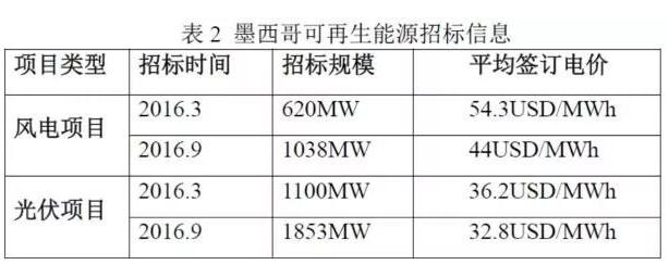 2015年11月,墨西哥宣布開展第一次大規(guī)??稍偕茉错椖空袠?biāo)。近期來看,已完成的兩輪招標(biāo)分別是2016年3月和9月的項目招標(biāo),情況如下表: