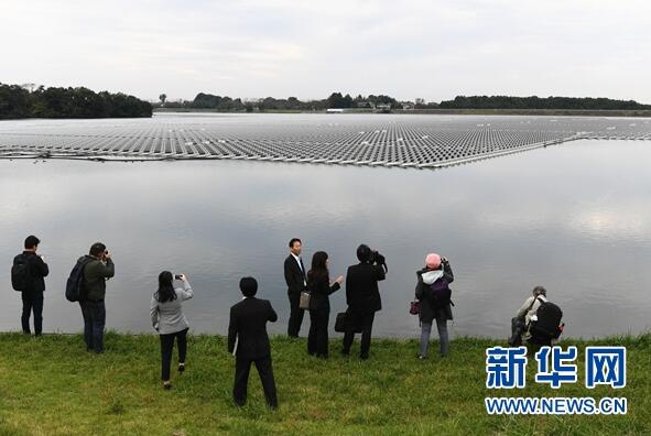 發(fā)電容量達13 7兆瓦的日本最大的水上太陽能發(fā)電站已在千葉縣山倉水庫建成,明年3月將正式發(fā)電運營。日前在日本外國記者中心的組織下,記者現(xiàn)場參觀了這一發(fā)電站。這個水上太陽能發(fā)電站一共使用了50904塊京瓷公司