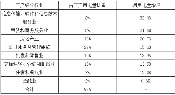 5月第三產(chǎn)業(yè)用電量主要細(xì)分行業(yè)情況