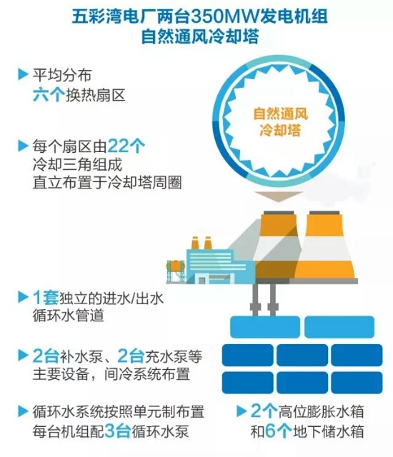 是的,沒(méi)搞錯(cuò),就是空冷。這座使用空冷技術(shù)的燃煤電廠就是國(guó)神集團(tuán)五彩灣電廠。而五彩灣電廠所使用的空冷技術(shù)的學(xué)名叫做哈蒙氏間接空冷系統(tǒng),這可是一個(gè)非常牛的系統(tǒng)哦,它是一種帶表面式凝汽器的間接空冷系統(tǒng),它的最大特點(diǎn)是冷卻水與汽輪機(jī)排汽不相混合,進(jìn)行表面換熱,這樣可以滿足大容量機(jī)組對(duì)鍋爐給水水質(zhì)較高的要求。該系統(tǒng)與常規(guī)的濕冷系統(tǒng)基本相同,不同之處是用空冷塔代替濕冷塔,用不銹鋼凝汽器代替鈦管凝汽器,用除鹽水代替自然狀態(tài)水(例如海水、湖水、江水等),用密閉式循環(huán)冷卻水系統(tǒng)代替敞開式循環(huán)冷卻水系統(tǒng)。