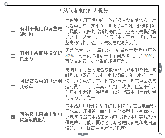 天然氣發(fā)電的優(yōu)勢(shì)主要有以下三個(gè)方面。一是相對(duì)清潔,二氧化碳和氮氧化物排放水平分別低于燃煤發(fā)電的50%和20%,二氧化硫和煙塵排放幾乎為零。二是運(yùn)行靈活,啟停時(shí)間短,爬坡速率快,調(diào)節(jié)性能出色。三是占地面積小,可以布局在負(fù)荷中心。