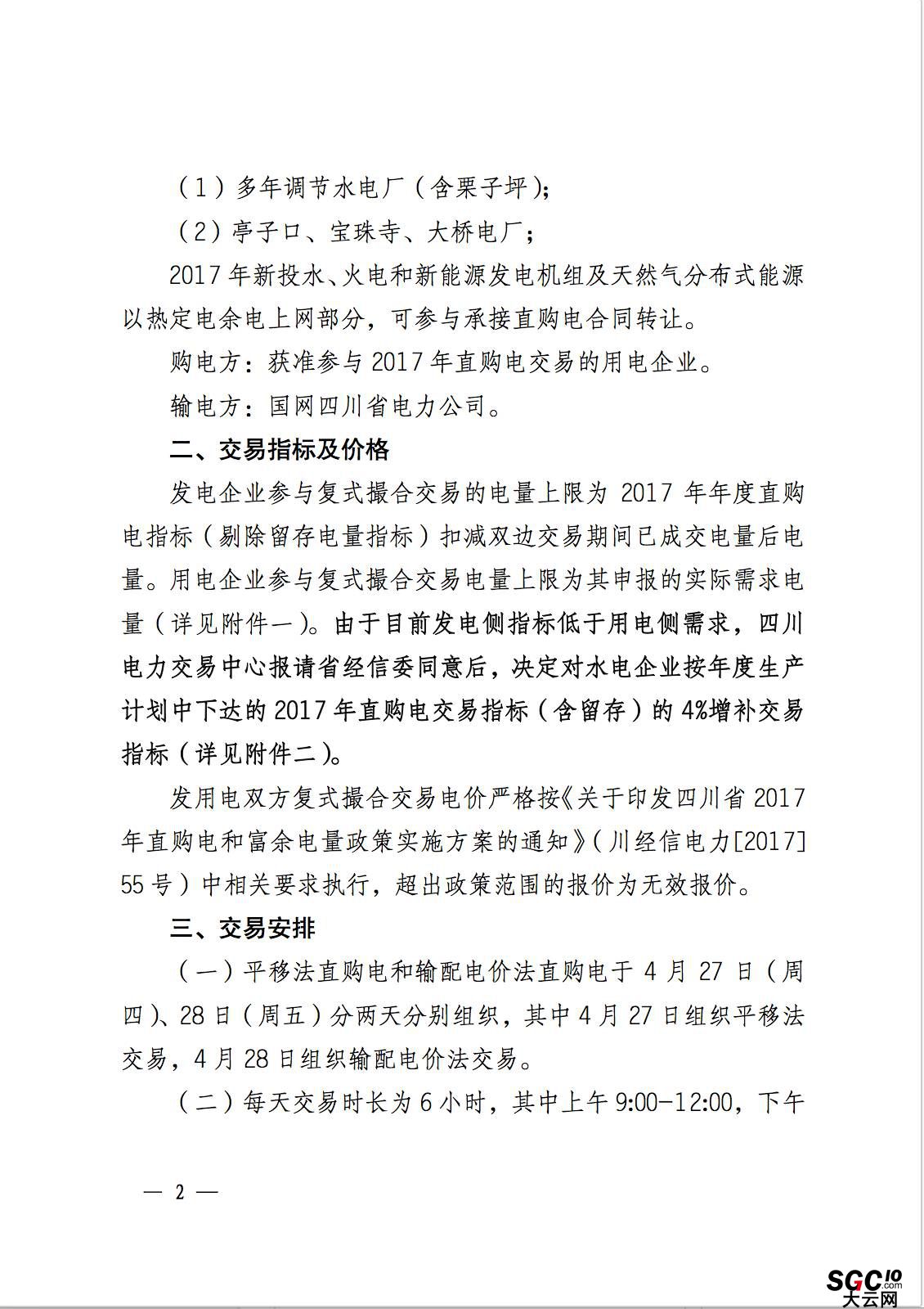 附:四川電力交易中心《關于開展2017年度直購電平臺復試撮合交易的公告》原文:
