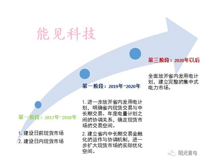 第三階段,全面放開(kāi)省內(nèi)發(fā)用電計(jì)劃,建立完整的集中式電力市場(chǎng)。