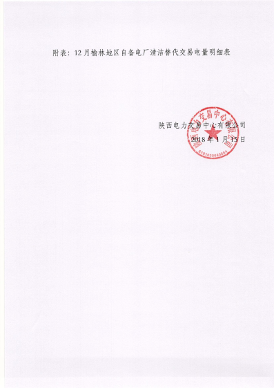 《2017年12月份榆林地區(qū)自備電廠(chǎng)清潔替代交易執(zhí)行情況通報(bào)》