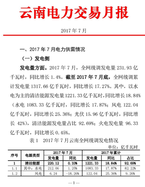 云南7月電力交易月報 省內(nèi)市場成交電量58.10億千瓦時