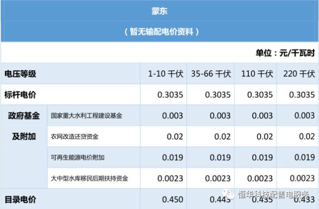 全國(guó)各省電價(jià)匯總之華北、華東、東北區(qū)域