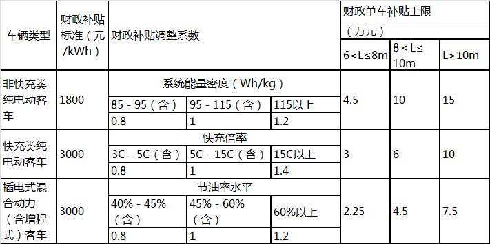 其它新能源客車補(bǔ)貼標(biāo)準(zhǔn)