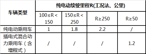 2. 純電動(dòng)乘用車動(dòng)力電池系統(tǒng)的質(zhì)量能量密度不低于90Wh/kg,對(duì)高于120Wh/kg的按1.1倍給予補(bǔ)貼。
