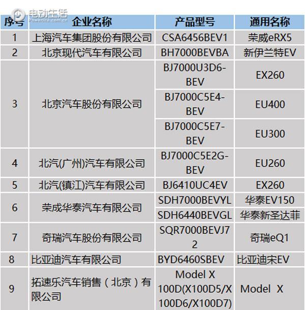 根據(jù)表格顯示,此次備案材料齊全的企業(yè)共有9家,12款車型。