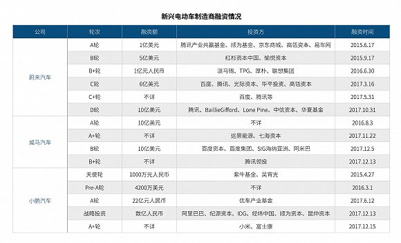 團隊的融資能力或成為考驗此類新興電動車制造企業(yè)的第一道難題,而目前嶄露頭角的新玩家均在相關領域表現(xiàn)的較為出色。上個月,蔚來汽車獲得10億美元融資。此輪融資由騰訊領投,而中國搜索引擎巨頭百度則是另一位投資者。