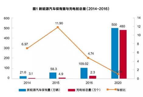 三是充電樁產(chǎn)業(yè)市場(chǎng)容量巨大,發(fā)展前景廣闊。根據(jù)《電動(dòng)汽車充電基礎(chǔ)設(shè)施發(fā)展指南(2015-2020)》的要求,2020年國(guó)內(nèi)新增集中式充換電站將超過 1.2 萬座,分散式充電樁需超過 480 萬個(gè),車樁比為1.04。而2016年底,我國(guó)充電樁總量為23萬,僅完成目標(biāo)量的4.79%,總量缺口高達(dá)457萬,說明充電樁產(chǎn)業(yè)市場(chǎng)潛力巨大,開發(fā)前景廣闊。