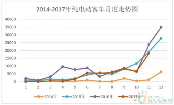 年底效應(yīng)在純電動客車領(lǐng)域顯現(xiàn)。根據(jù)工信部合格證產(chǎn)量統(tǒng)計,我國純電動客車11月共計生產(chǎn)18113輛,同比微降2%,環(huán)比10月的6568輛大幅增長176%?! ?017年1-11月月度產(chǎn)量分布圖可以看出,11月是截至目前唯