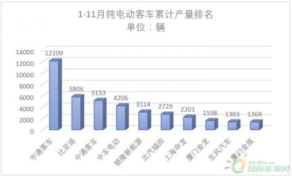 不過除了宇通穩(wěn)坐第一之外,亞軍寶座卻時常變動,上個月排名第三的比亞迪1-11月以累計生產(chǎn)純電動客車5806輛排名第二,中通客車則以累計5153輛排名第三。截至目前,純電動客車產(chǎn)量前三強(qiáng)和2016年保持一致,說明強(qiáng)者市場地位基本穩(wěn)固。