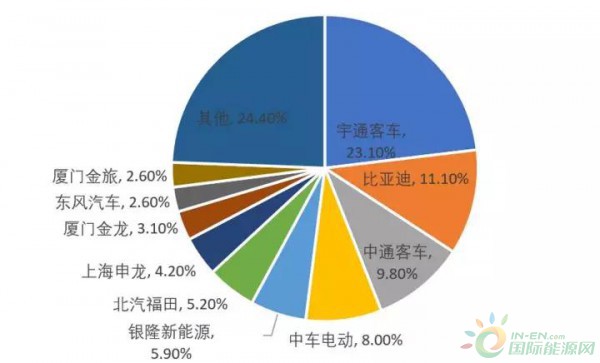 2017年1-11月各企業(yè)純電動客車市場份額