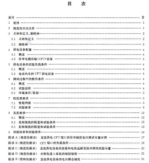 《電動(dòng)汽車(chē)傳導(dǎo)充電系統(tǒng) 第2部分:非車(chē)載傳導(dǎo)供電設(shè)備電磁兼容要求》規(guī)定了電動(dòng)汽車(chē)非車(chē)載傳導(dǎo)充電的電動(dòng)汽車(chē)供電設(shè)備的電磁兼容要求,供電設(shè)備的供電電源額定電壓最大值為1000V AC或1500V DC,額定輸出電壓最大值為1000V AC或1500V DC。