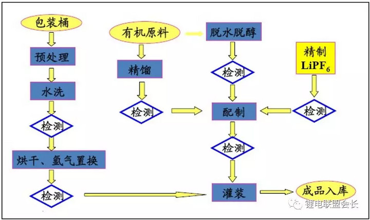 小結(jié):本文主要介紹了的電解液在工業(yè)上的生產(chǎn)方法,以及一些原材料的合成方法,需要說明的是,雖然電解液的制作過程看起來相對比較簡單,但其中對環(huán)境、溫濕度、雜質(zhì)的控制是有嚴格要求的,在實際生產(chǎn)中往往有這種情況的發(fā)生,幾個電解液的成分是完全一樣的,但是電性能卻差的很遠,究其原因,很大一部分原因就是原材料純度不純或者電解液中含有一定量的雜質(zhì),所以在實際生產(chǎn)中,一定要生產(chǎn)過程中的環(huán)境控制。