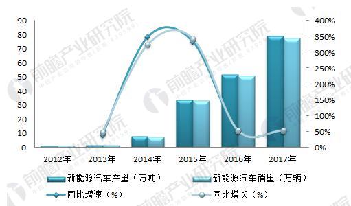 新能源汽車作為動力鋰電池的重要應用領域,其行業(yè)發(fā)展需求將對鋰電池行業(yè)有較大的影響。2012-2017年,我國新能源汽車產(chǎn)銷量上升趨勢明顯,以2015年為最大的產(chǎn)銷增速,在增量供應增加的影響下,2016年后行業(yè)趨于平穩(wěn)上升發(fā)展。2017年我國新能源汽車的產(chǎn)銷規(guī)模分別為79.4萬輛和77.7萬輛,增速均超過50%。新能源汽車呈現(xiàn)供過于求的發(fā)展局面,但總體而言供求趨于平衡。