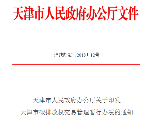天津市人民政府日前發(fā)布了《天津市碳排放權(quán)交易管理暫行辦法》,該通知自2018年7月1日起施行。