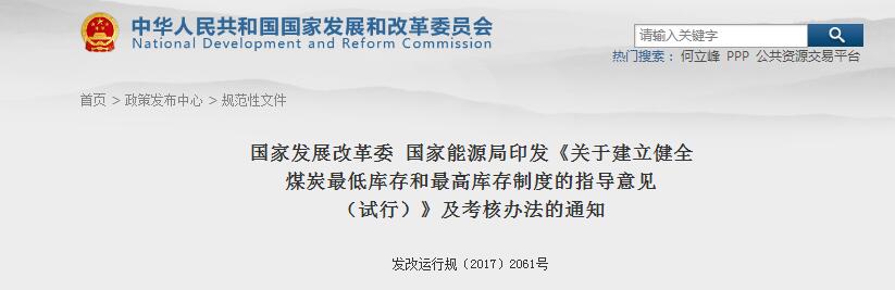 今日下午,國家發(fā)改委、能源局印發(fā)《關(guān)于建立健全煤炭最低庫存和最高庫存制度的指導(dǎo)意見(試行)》及考核辦法的通知。由于我國新能源與可再生能源發(fā)展仍需漫長過程,煤炭仍占我國能源主體地位,煤炭科學(xué)管理勢在必行。據(jù)了解,為穩(wěn)定煤炭市場,確保煤炭供應(yīng),國家自2010年始就力推大型儲煤基地建設(shè)。發(fā)改委于2014年12月30日專門下發(fā)文件,提出2020年前重點(diǎn)建設(shè)11個大型煤炭儲配基地和30個年流通規(guī)模2000萬噸級物流園區(qū);培育一批大型現(xiàn)代煤炭物流企業(yè),其中年綜合物流營業(yè)收入達(dá)到500億元的企業(yè)10個;建設(shè)若干個煤炭交易市場。此制度的約束力小編認(rèn)為比較強(qiáng),執(zhí)行情況也應(yīng)該會比較好,對于平抑煤價“過山車”將起到積極作用,最終一定能夠達(dá)到促進(jìn)經(jīng)濟(jì)平穩(wěn)運(yùn)行的目的。通知原文如下: