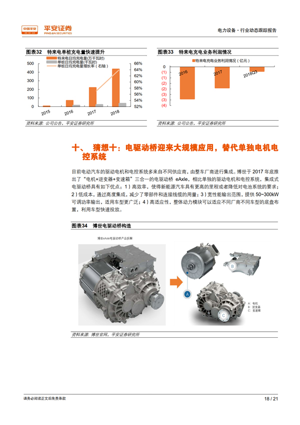 猜想十:電驅(qū)動橋迎來大規(guī)模應(yīng)用,替代單獨電機(jī)電控系統(tǒng)。電驅(qū)動橋低成本和高適應(yīng)性的特點,使得電驅(qū)動橋成為電動汽車行業(yè)上下游共同的選擇。明年電驅(qū)動橋?qū)⒂瓉硪?guī)模化應(yīng)用。相較于單獨的電機(jī)和電控,單品價值提升,技術(shù)門檻相對提高,產(chǎn)品更易于實現(xiàn)差異化定位,改善目前電機(jī)電控產(chǎn)品同質(zhì)化較為嚴(yán)重的局面。較早推出電驅(qū)動橋的廠商毛利率有望得到一定提升。