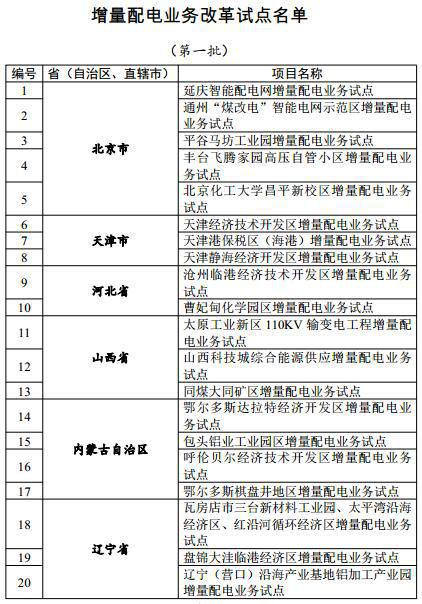 2016年國家發(fā)改委和國家能源局曾以特急的等級下發(fā)了一份關(guān)于增量配電網(wǎng)業(yè)務試點申報的文件,擬以增量配電設(shè)施為基本單元,確定105個吸引社會資本投資增量配電業(yè)務的試點項目。具體試點名單如下: