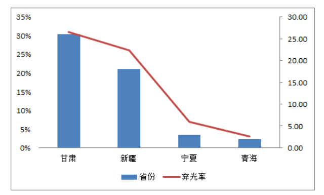 圖表5 重點(diǎn)省份甘肅棄光率30%以上