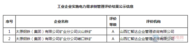 工業(yè)企業(yè)實施電力需求側(cè)管理評價結(jié)果公示