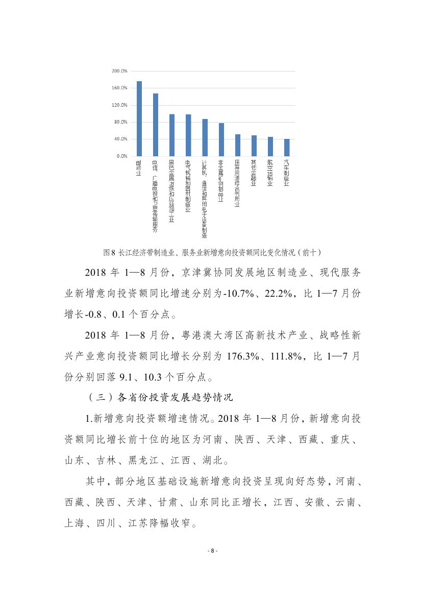 國(guó)家發(fā)改委發(fā)布2018年8月全國(guó)固定資產(chǎn)投資發(fā)展趨勢(shì)監(jiān)測(cè)報(bào)告,基礎(chǔ)設(shè)施業(yè)今年首次出現(xiàn)降幅收窄態(tài)勢(shì),1-8月,新能源同比增長(zhǎng)89.9%,詳情如下: