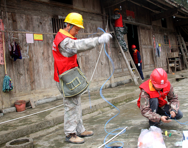 國(guó)網(wǎng)湖南省保靖供電公司“國(guó)強(qiáng)”黨員服務(wù)隊(duì)在清水坪鎮(zhèn)梁山村為貧困戶(hù)檢修線路。入冬以來(lái),該供電公司針對(duì)貧困戶(hù)家中用電線路老化和電表?yè)p壞等情況,組織黨員服務(wù)隊(duì)深入各個(gè)扶貧村,進(jìn)行免費(fèi)改造和更換,確保貧困群眾溫暖過(guò)冬。
