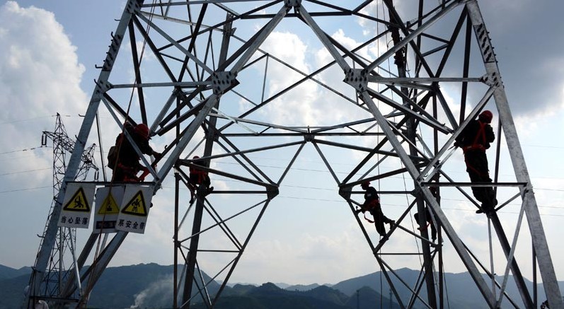 8月13日,在秦嶺腹地的陜西省商洛市丹鳳縣鳳冠山,寧西鐵路復(fù)線110千伏丹鳳牽供電工程45號(hào)鐵塔正在進(jìn)行組裝施工。承擔(dān)施工任務(wù)的國(guó)網(wǎng)商洛供電公司克服高溫酷暑,加快工程建設(shè),全力為寧西鐵路復(fù)線建設(shè)提供可靠