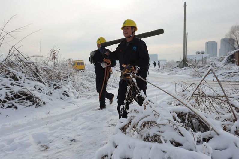 鞍山供電公司6名一線工作人員在市郊10千伏魏家屯線8號(hào)變壓器臺(tái)處,緊急處理因?yàn)楸┭?dǎo)致的短路事故。據(jù)了解,12月3日鞍山地區(qū)電網(wǎng)受到暴雪災(zāi)害侵襲,鞍山供電公司沉著應(yīng)對(duì),發(fā)揮了“三集五大”后人、財(cái)、物集約優(yōu)勢(shì),組織送、變、配等專業(yè)干部員工,全力排除雪災(zāi)導(dǎo)致的故障,保證了鞍山地區(qū)電網(wǎng)的安全穩(wěn)定運(yùn)行。