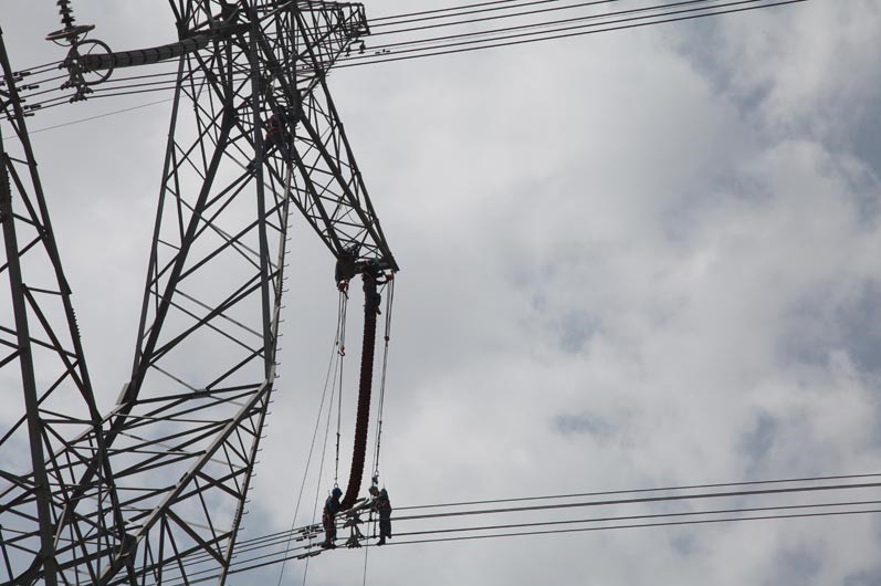 在更換過程中,塔上和塔下人員配合嫻熟,經(jīng)過5個小時的不停奮戰(zhàn),圓滿的完成“更新”任務(wù),確保了線路安全穩(wěn)定的運行。