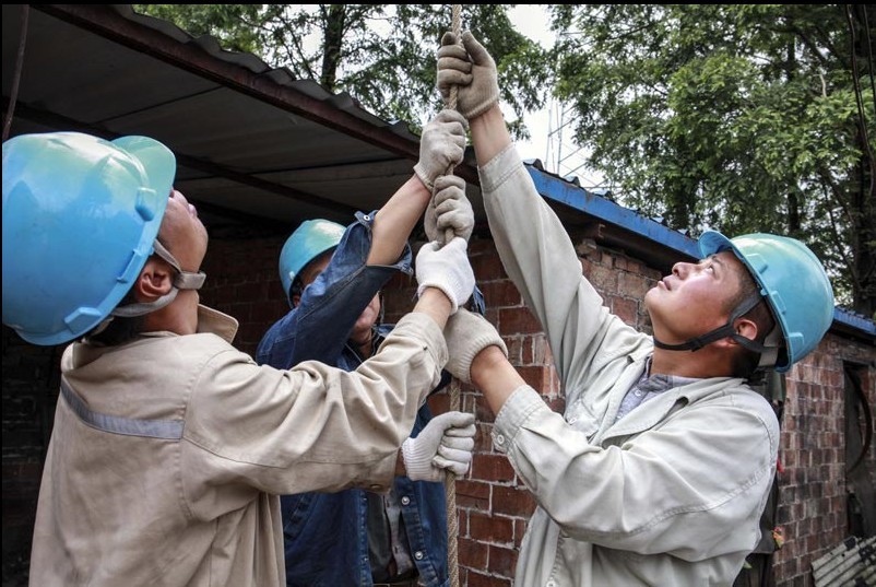 5月27日,江蘇泰州安泰輸變電工程有限公司工作人員正在35千伏口港線88號(hào)-90號(hào)改造現(xiàn)場組立鐵塔。 35千伏口港線工程肩負(fù)著泰州市高港區(qū)務(wù)港局和長江口岸閘口的供電任務(wù)。此線路已投運(yùn)近20年,由于運(yùn)行年限較