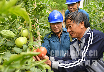 項目附近的蔬菜大棚內(nèi),溫暖如春,綠油油的葉子下面,紅彤彤的西紅柿、翠綠的西葫蘆等,吸足了陽光和水分,長勢喜人。初冬時節(jié),就可上市供市民食用。