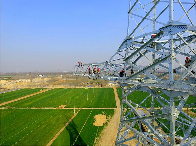 【背景】 送變電工程公司技術(shù)人員在江蘇徐州銅山境的晉北-南京±800千伏特高壓直流輸電工程建設(shè)工地上組立鐵塔?! x北-南