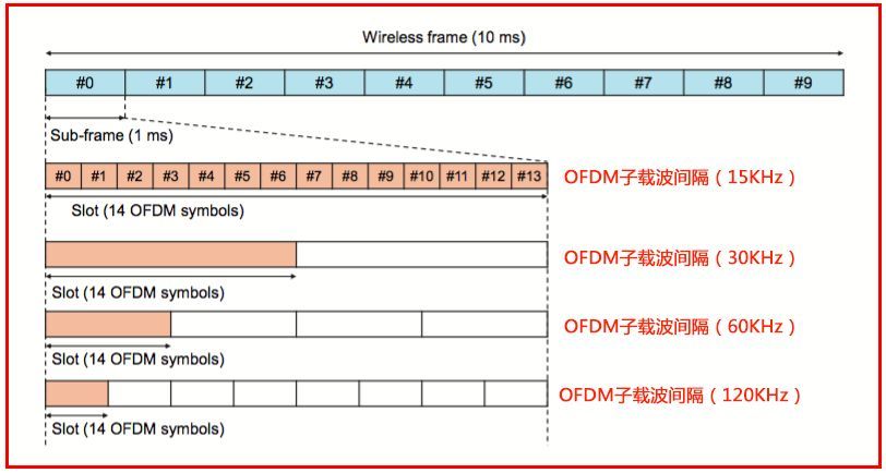 不同的是,5G NR定義了靈活的子構(gòu)架,時隙和字符長度可根據(jù)子載波間隔靈活定義。