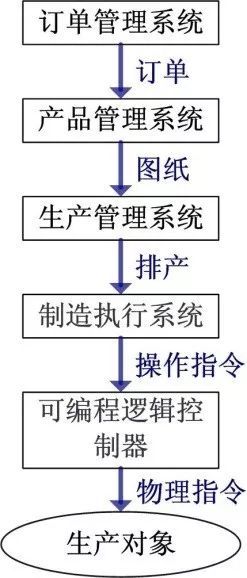 當用戶在訂單管理系統(tǒng)(或CRM系統(tǒng))里面下了一個批次的產(chǎn)品訂單-->產(chǎn)品管理/設(shè)計系統(tǒng)(例如PDM系統(tǒng)-Product Data Management,產(chǎn)品數(shù)據(jù)管理)便會交出產(chǎn)品圖紙和其他生產(chǎn)信息-->生產(chǎn)管理系統(tǒng)(例如ERP系統(tǒng)、APS系統(tǒng))根據(jù)產(chǎn)品信息著手協(xié)調(diào)資源、計劃生產(chǎn)-->MES(Manufacturing Execution System,制造執(zhí)行系統(tǒng))則根據(jù)排產(chǎn)計劃通過PLC模塊(Programmable Logic Controller,可編程邏輯控制器)控制車間內(nèi)的設(shè)備進行生產(chǎn)制造。從制造流程中可以看出,從獲得訂單到制造產(chǎn)品,需要企業(yè)內(nèi)的所有系統(tǒng)實現(xiàn)“縱向集成”。