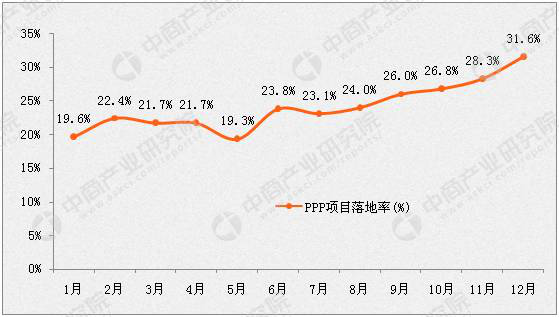 2016年各月份中國(guó)PPP項(xiàng)目落地率變化趨勢(shì)圖