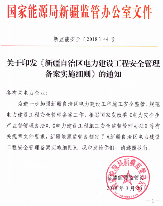 近日,新疆能監(jiān)局印發(fā)關(guān)于《新疆自治區(qū)電力建設(shè)工程安全管理備案實施細則》的通知,本細則適用于新疆境內(nèi)新建、擴建、改建、拆除等電力建設(shè)