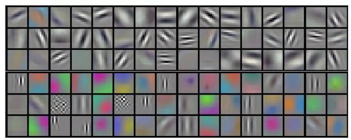 這些方法旨在提供一些可視化的手段以理解深度卷積神經(jīng)網(wǎng)絡(luò)。直接可視化第一層濾波器 由于第一層卷積層的濾波器直接在輸入圖像中滑動(dòng),我們可以直接對(duì)第一層濾波器進(jìn)行可視化??梢钥闯?,第一層權(quán)重關(guān)注于特定朝向的邊緣以及特定色彩組合。這和生物的視覺(jué)機(jī)制是符合的。但由于高層濾波器并不直接作用于輸入圖像,直接可視化只對(duì)第一層濾波器有效。