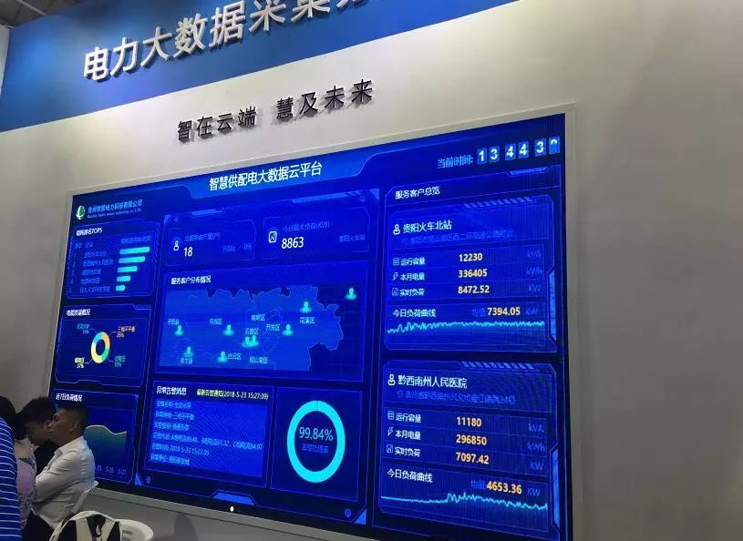 位于數(shù)博會(huì)4號(hào)館的貴州智慧電力科技有限公司展臺(tái)里,技術(shù)人員正在給前來(lái)咨詢的客戶講解“智慧供配電大數(shù)據(jù)云平臺(tái)”的技術(shù)應(yīng)用。貴州智慧電力科技有限公司總經(jīng)理吳駿告訴記者: