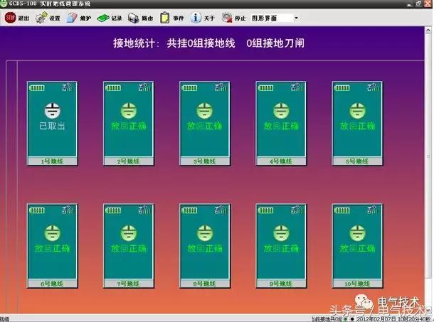 當(dāng)拆除地線時(shí),也應(yīng)該嚴(yán)格按照五防邏輯進(jìn)行拆除,并按照地線取出位置放回地線室,如果漏拆或拆錯(cuò),下一步操作將會(huì)閉鎖,不能進(jìn)行下步操作。在地線掛接后,智能地線頭的檢測(cè)器會(huì)將掛接信息上報(bào)到實(shí)時(shí)地線管理后臺(tái)軟件上,后臺(tái)軟件會(huì)顯示當(dāng)前地線掛接位置,并伴有語(yǔ)音提示。