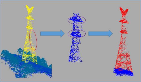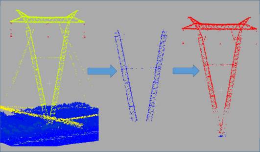 圖6 不同類型電塔的激光點云提取過程