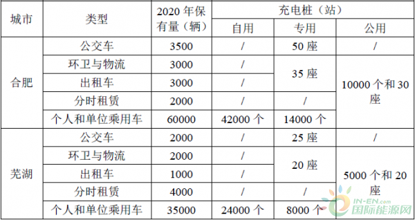 安徽省試點城市電動汽車充電設(shè)施建設(shè)目標(biāo)